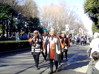 参加した団体は、12団体で、それぞれの分列行進の後、恒例の埼玉県防災ヘリ訓練、祝太鼓、古式腕用ポンプ操法、とび組合の皆さんによるあざやかな梯子乗りの妙技などが披露され、千名を超す見物人から盛んな拍手が送られていました。