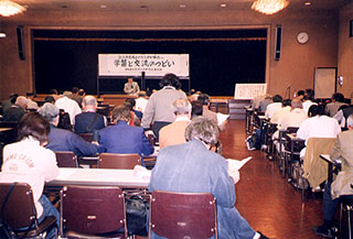 開会に先立ち、新井竹子さん(坂戸市在住)作詞の「九条の歌」をはじめ、何曲か全員合唱が行なわれました。守屋裕子・県議会議員の開会あいさつのあと、4人の戦争体験者の方が「私と日本国憲法」という内容でそれぞれの思いを語りました。 メインの講演は「改憲策動の現局面と多数派の結集への展望」という演題で、とがし練三・前参議院議員が話しました。 とがしさんは、最初に「憲法をめぐるたたかいの現局面の特徴について」、改憲策動は新たな段階に入っており、戦後史の中でもっとも危険なものとなっていることは疑いないと語り、アメリカ・財界・マスコミなどの一昨年から今年にかけての動きを語りました。 次に「憲法問題の中心論点は第九条」として、自民党・民主党・公明党・経団連などが各々あれこれ言っているが、第九条を改悪し、「海外で戦争をする国」に変えていくことでは一致していることが話されました。 また、「戦争をする国の体制づくり」は基本的人権が制限される問題、憲法改悪の手続きをやりやすくするために「国民投票法」が目論まれていることなどについての話がありました。 「憲法改悪ストップの展望」として、