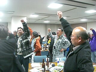 1月26日(金)、坂戸市文化施設オルモにて、埼玉土建労働組合坂戸支部の「新春旗開き」が開催されました。 最初に挨拶に立った霜山坂戸支部長は、私たち建設に係わる労働者には、景気回復の実感はない。依然と続く厳しい状況のもとで、今年も組合員を拡大しみんなで頑張ろう。そして、春から夏にかけて行われる統一地方選と参議院選挙で勝利しようと力強く訴えました。 その後、昨年の組合員の拡大で奮闘した分会の表彰や今年の拡大での各支部からの決意表明がありました。 来賓として、坂戸市・鶴ヶ島市・毛呂山町の各議員が出席し、代表して鶴ヶ島市議会議員の高田議員が連帯と激励の挨拶を行ないました。また、坂戸市長をはじめ、近隣の首長からのメッセージも披露されました。 |