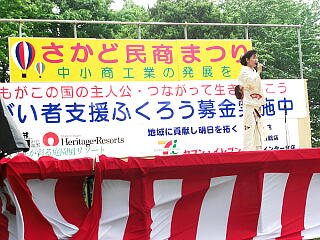 5月17日(日)、坂戸市総合運動公園・体育館・公園内の周辺道路(当日開催中は交通止め)などを会場に、第6回坂戸民商まつりが開催されました。 前日の天気予報では、民商まつり当日は午前午後とも降水確率80%以上、早朝までの雨でどうなるか心配されましたが、10時の開会時刻には晴れ間も出て、模擬店やフリーマーケット参加者もひと安心、強い風には少し悩まされましたが「まつり日和」の天候となりました。 中央舞台では、西村会長の開会のあいさつ、小川市議会議長などの来賓のあいさつが行なわれ、その後、「ラブドライブ」の司会、地元の住吉中学校吹奏楽部の演奏で華やかにスタートしました。 坂戸太鼓、龍神太鼓、フルスイングジャズオーケストラの演奏、麻川萌さんの歌など閉会の3時まで終日催しが行なわれました。 中央舞台の周辺では食べ物中心の模擬店が並び、昼食時刻には、焼き鳥・焼きそば・うどんなど、どこも行列ができました。急激に温度も上がり、カキ氷やビールなどの模擬店も賑わいました。 体育館横の道路では、今年も「よさこい流しおどり」が10チームを超える参加で賑やかに、華麗な舞を披露、沿道の見学者からは、拍手や大きな声援が飛んでいました。 体育館内では、新潟の棚田・奥入瀬・よさこいなどの写真展、青空ひろばでは50区画のフリーマーケットがところ狭しと立ち並び、掘り出し物を楽しそうに探していました。 後援会の模擬店も完売今年も、日本共産党坂戸市後援会は、テントを借り模擬店に参加しました。 焼きソバ・わたあめ・チョコバナナとも午後1時頃にはすべて完売しました。「雨で残ったらどうしよう」の心配が嘘のような売れ行きに、元気の出た後援会活動でした。 |