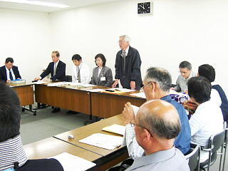 5月25日(火曜日)、埼玉県社会保障推進協議会(社保協)による2010年自治体要請キャラバンが、坂戸市役所の会議室において行なわれました。 毎年行なわれている自治体要請キャラバンは、社会保障の拡充を求める要請を埼玉県下の全自治体(市町村)にするもので、今年は5月17日から27日まで、32コース64市町村で行なわれました。 坂戸市では当日参加者によるロビーでの打合せ後、午前10時から11時半までの予定で進められ、各事項とも参加者からの質問が多く出され12時近くまでの懇談となりました。 坂戸市との今回の要請には、入間西部社会保障をよくする会など20名を超える市民が参加しました。坂戸市側からは市川福祉部長・大塚健康増進部長をはじめ国保・生活保護・介護保険・税金関係の職員約20名が対応しました。 当日の懇談内容は
