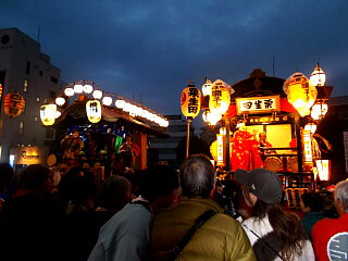 クライマックスは午後5時から坂戸駅北口で9台の山車が勢ぞろいしての「夜の合同曳っかわせ」。